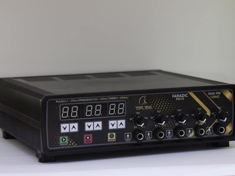 دستگاه فارادیک (Faradic) یا همون دستگاه تحریک عضلانی الکتریکی (EMS)، با جریان الکتریکی ضعیف و کنترلشده باعث انقباض عضلات بدن میشه.