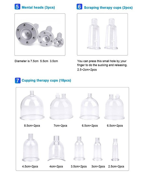 • دارای 4 جفت برای بادکش درمانی ( رفع گرفتگی عضلات)