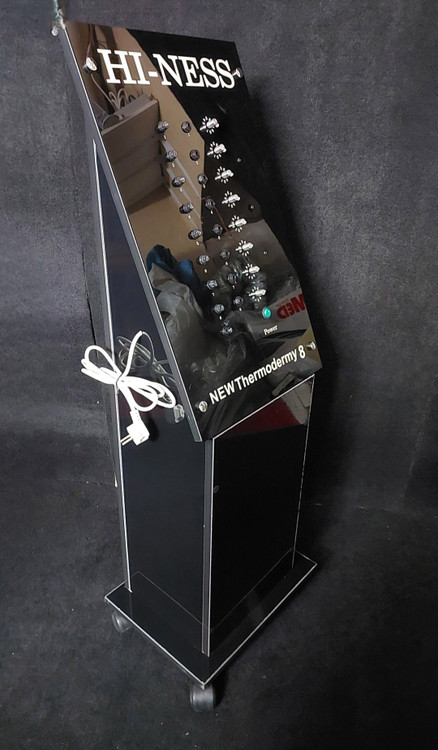 دستگاه ترمودرمی استند دار هاینس مناسب کلینیک های شلوغ و سطح کیفیت کاری بالا میباشد،این دستگاه ده خروجی دارد و از یک ترانس پر قدرت اورجینال ساخته شده،این دستگاه در کنار دستگاه دارای یک فن پرقدرت برای خنک نگاه داشتن قطعات میباشد تا از راندمان بهتر برخوردار شود،هر کدام از کانال های دستگاه دارای یک فیوز میباشد تا در هنگام نوسان دچار مشکل دیگر کانال ها نشود،بدنه این دستگاه ترکیب ایی از فلکسی_MDFمیباشد تا از سبکی و ایمنی و زیبایی بهتری برخوردار شود،این دستگاه شامل ده خروجی میباشد و تعداد تشک های ترکیبی از شکم ،ران،بازو