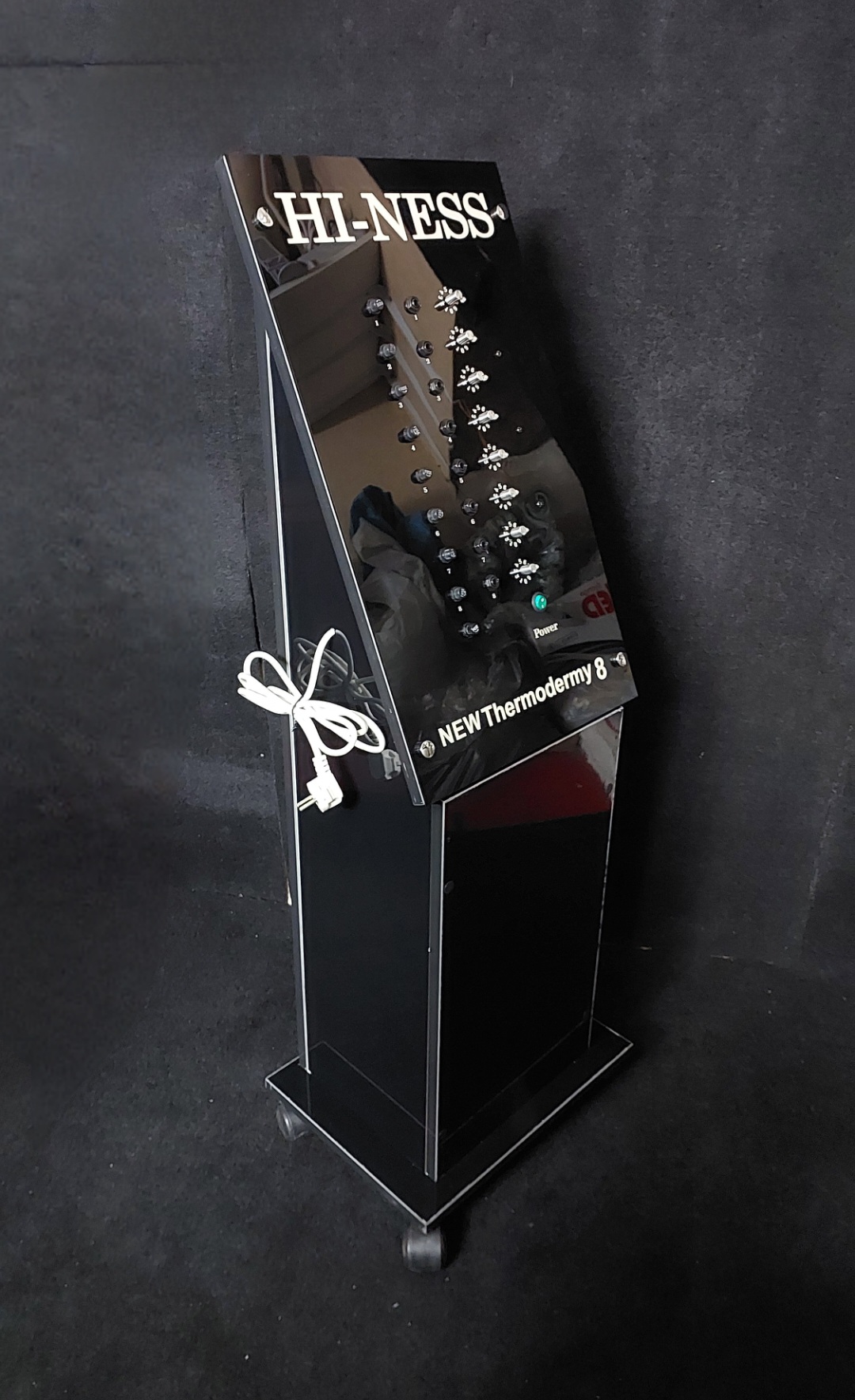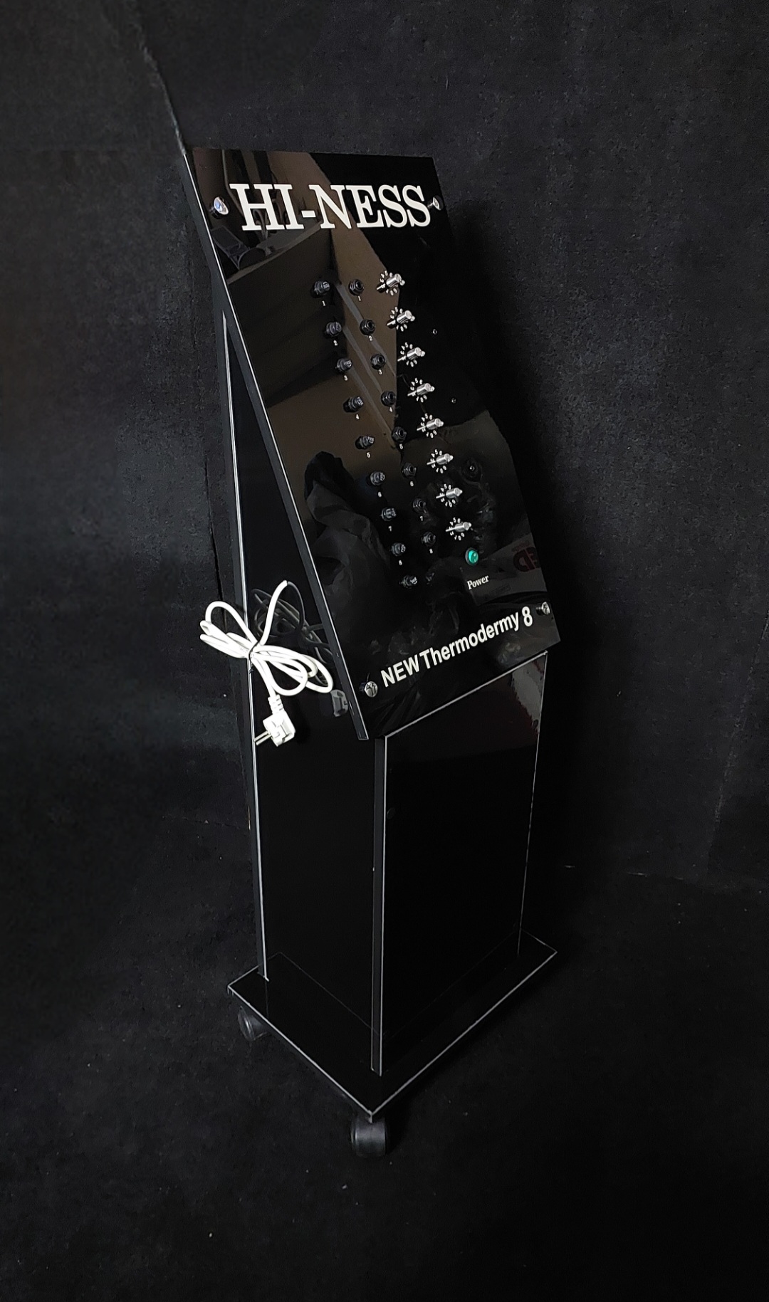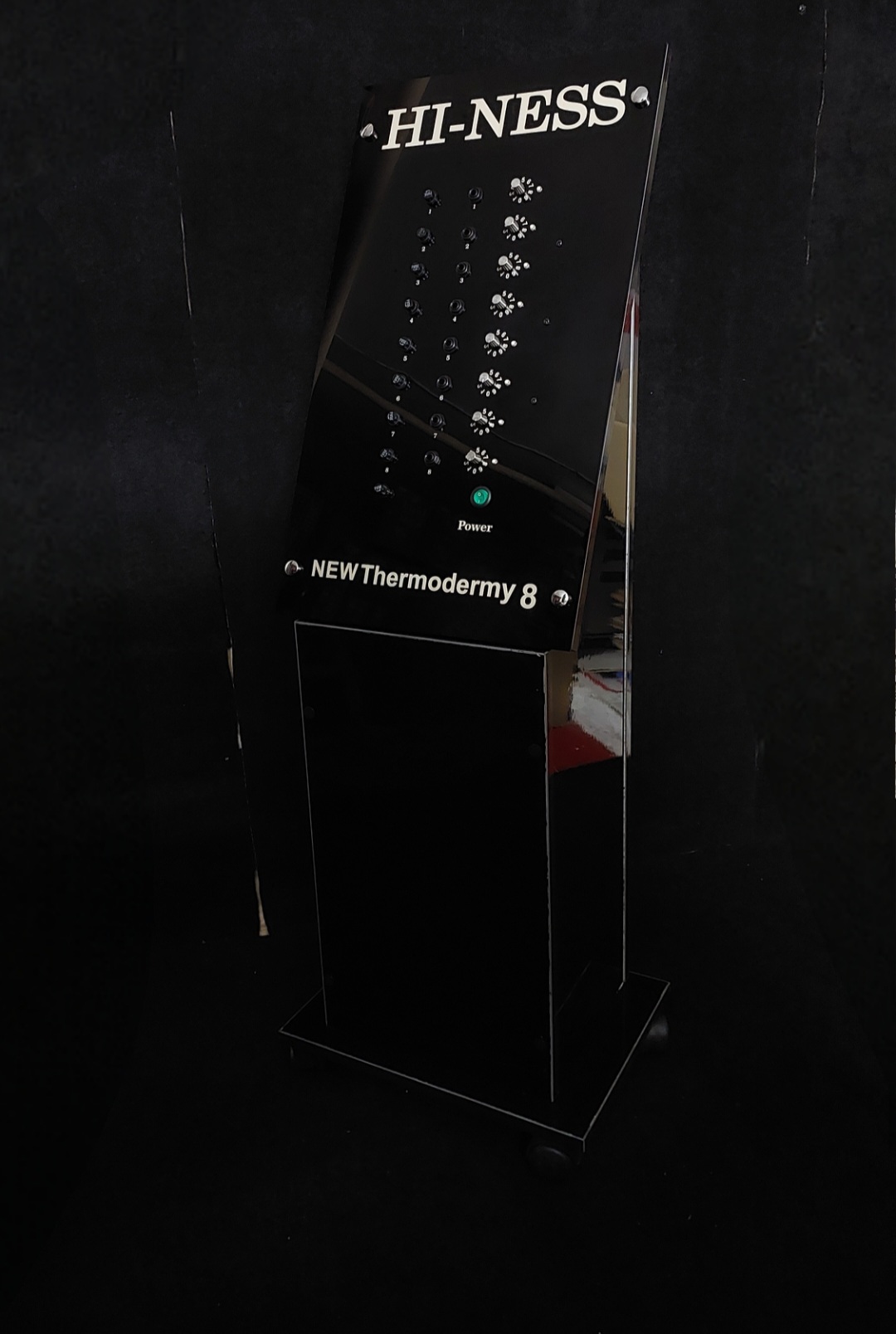دستگاه ترمودرمی استند دار هاینس مناسب کلینیک های شلوغ و سطح کیفیت کاری بالا میباشد،این دستگاه ده خروجی دارد و از یک ترانس پر قدرت اورجینال ساخته شده،این دستگاه در کنار دستگاه دارای یک فن پرقدرت برای خنک نگاه داشتن قطعات میباشد تا از راندمان بهتر برخوردار شود،هر کدام از کانال های دستگاه دارای یک فیوز میباشد تا در هنگام نوسان دچار مشکل دیگر کانال ها نشود،بدنه این دستگاه ترکیب ایی از فلکسی_MDFمیباشد تا از سبکی و ایمنی و زیبایی بهتری برخوردار شود،این دستگاه شامل ده خروجی میباشد و تعداد تشک های ترکیبی از شکم ،ران،بازو